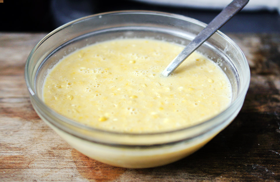 Wat doe je? Je gooit de maïs uit blik in een pan, doet er wat water bij zodat ze net onderwater staan, perst er een teen knoflook door en doet er 1 tablet kippenbouillon bij. Dit laat je even pruttelen, daarna pureer je de soep met de staafmixer en schep je er een flinke lepel crème fraîche door. En dan is het klaar:)