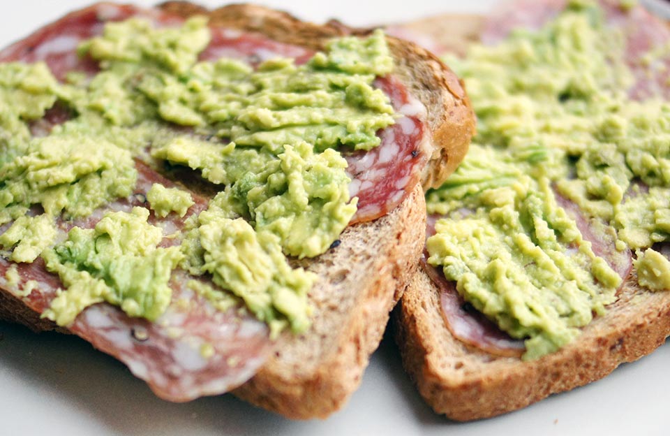 Weet je nog de salade die ik afgelopen woensdag at? Daar heb ik vandaag de overige avocado en Italiaanse worst (spianata romana) van gebruikt en op een geroosterd broodje gedaan. Super lekkere combi! Het proeft vrij vettig/romig door de avocado en worst, maar het is echt heerlijk. Vooral die combi van de pepertjes uit de worst die heel goed is met het smeuïge van de avocado. Mjam! En, ik heb er niet echt verstand van, maar volgens mij ook wel vrij gezond? Of niet?