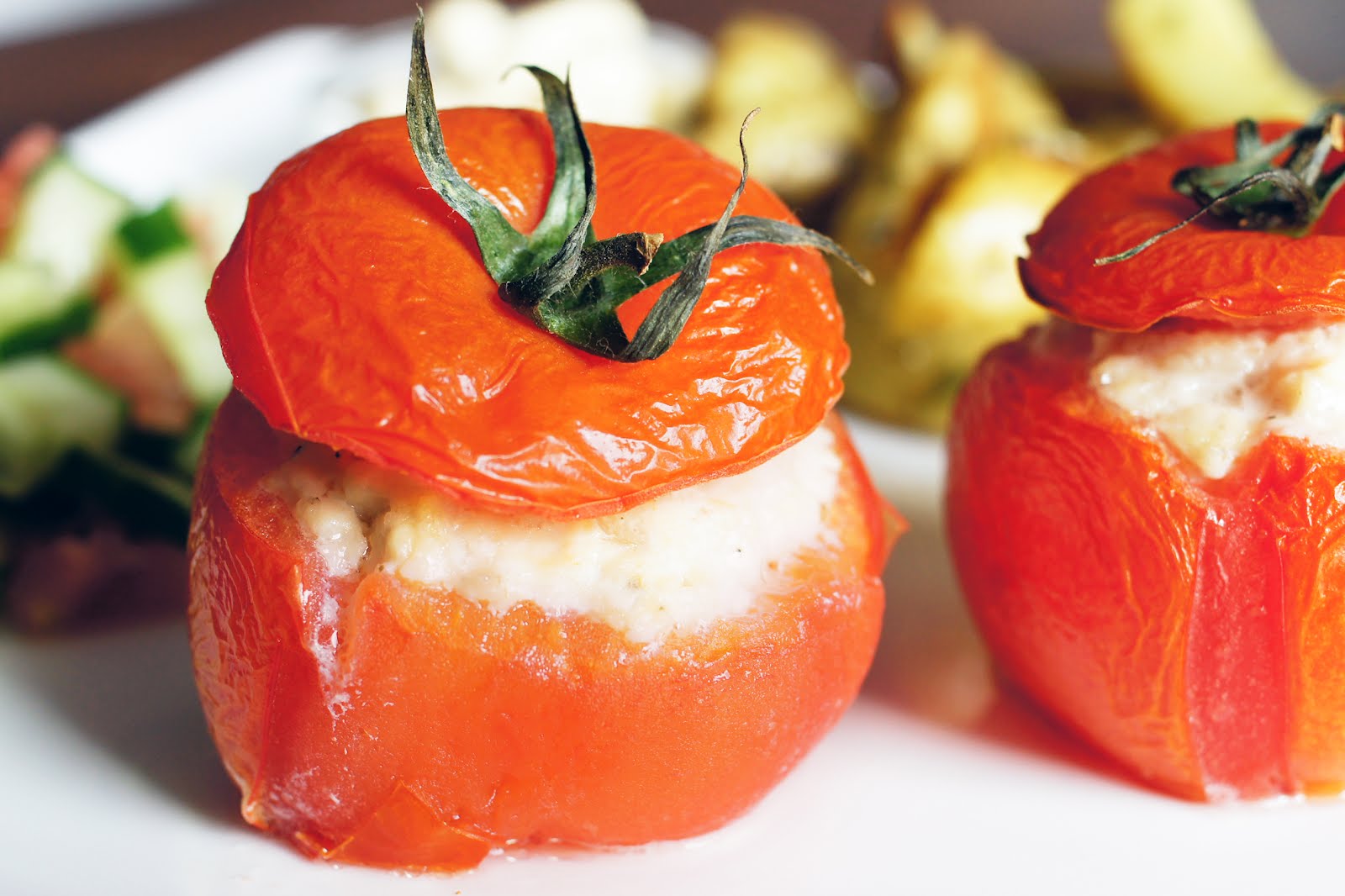 Je snijdt het topje van een tomaat eraf en holt de tomaat uit. Dan hak je op een snijplank een kipfilet echt tot gehakt, dit meng je met kruimeltjes feta en een teen knoflook. Alles goed door elkaar hakken en dan vul je daarmee de tomaten. 30 minuten op 200C in de oven, et voilà! Wat je uit de tomaat hebt gehaald, gooi je niet weg maar meng je met komkommer en serveer je erbij samen met rozemarijn aardappelpartjes van Celavita! Het was echt heel lekker!