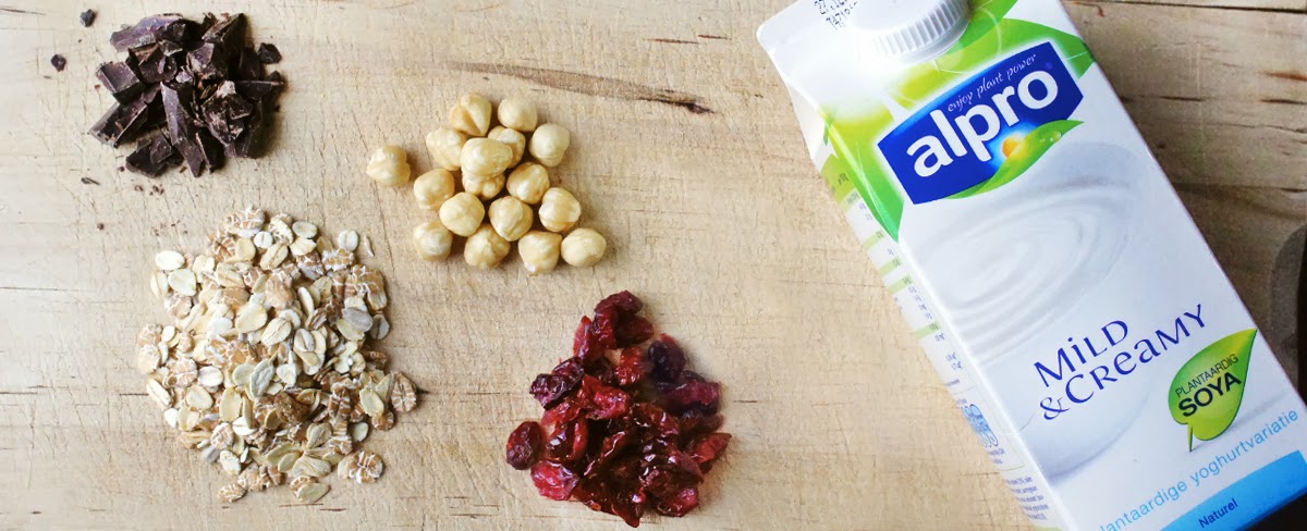 Zelf ben ik niet zo’n ontbijtliefhebber; ik eet vrijwel altijd vier droge crackers… Toen ik echter de kans kreeg om de Mild & Creamy van Alpro te proberen, werd ik opeens vrij creatief in de keuken. Mild & Creamy van Alpro is een plantaardige variatie op yoghurt. Je hebt het in verschillende smaken, maar ik ging voor dit ontbijt voor de naturel variant. Mild & Creamy van Alpro is gewoon te vinden in de supermarkt, net als alle overige producten voor dit goede ontbijt. Zoals jullie van me gewend zijn 😉